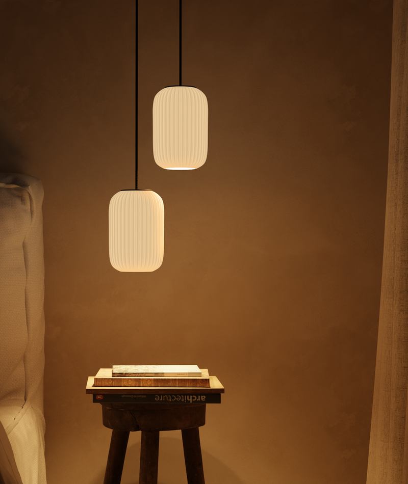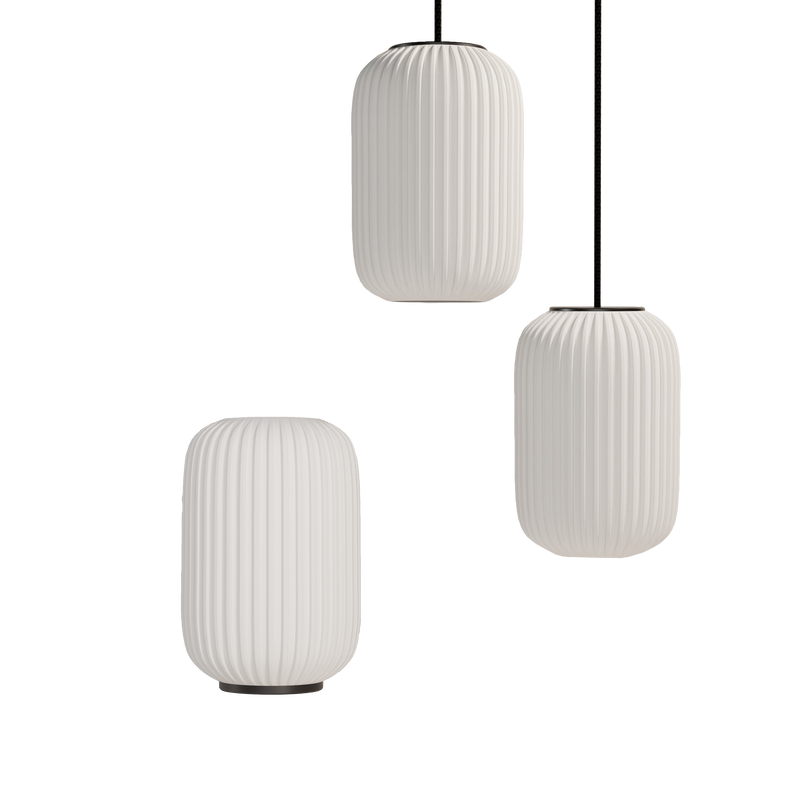 Die Lampenschirme bestehen aus nachhaltigen Polymeren (Polypropylen), die im 3D-Druck-Verfahren hergestellt werden. Das Textilkabel ist hochwertig, langlebig und für die sichere Nutzung optimiert.